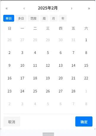 - 性能优化:多日选择模式下选择大量日期时可能影响性能,建议合理设置最大选择数量