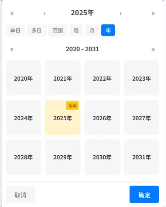 :yearRange="{ start: 2010, end: 2030 }" <!-- 只允许选择2010-2030年 -->