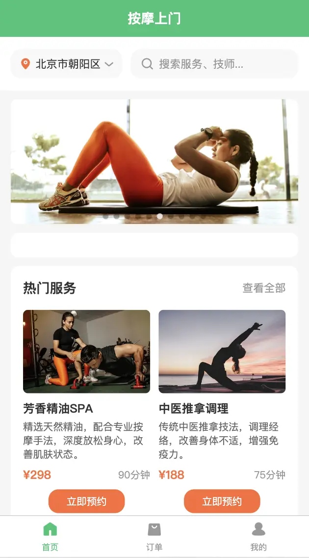 - 服务预约:在线预约按摩服务,支持多种支付方式