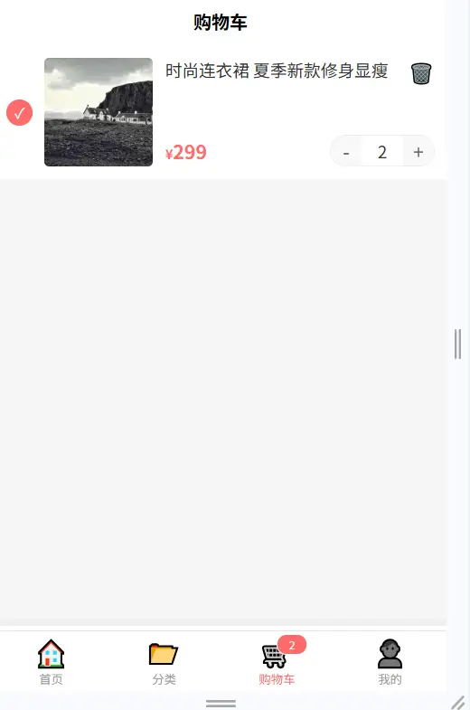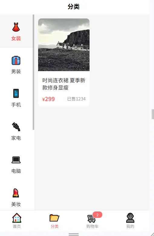 - 首页 - 轮播图、分类导航、商品列表、搜索入口