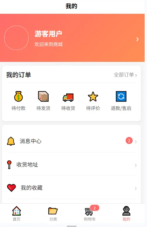 基于 uni-app 开发的纯前端商城模板,包含完整的商城功能和现代化UI设计。