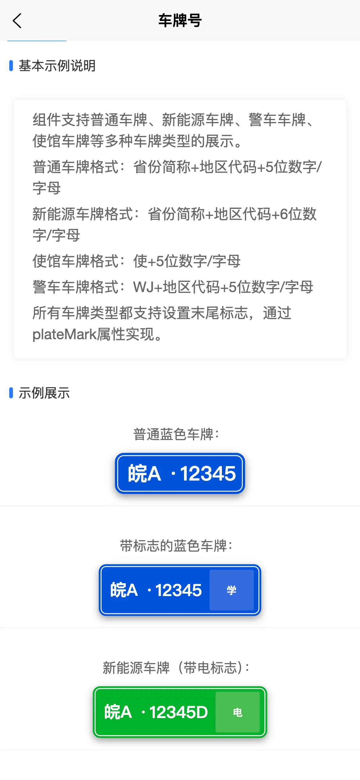 plateMark | String | '' | 车牌末尾标志(适用于所有车牌类型) |