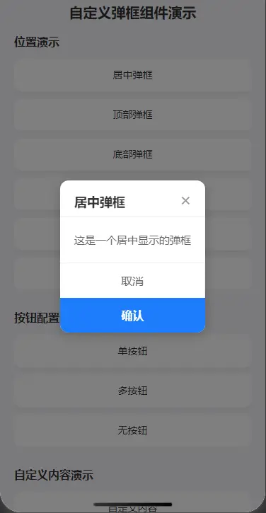 <custom-modal v-model:show="show" position="center" title="居中弹框" />