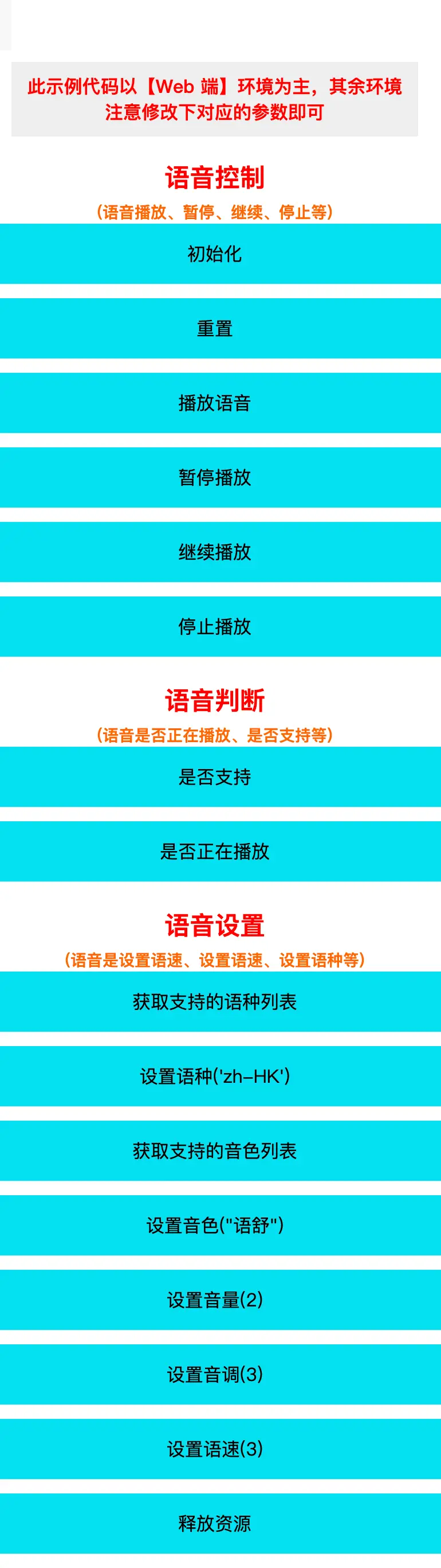 (检查是否正在播报)、getVoices