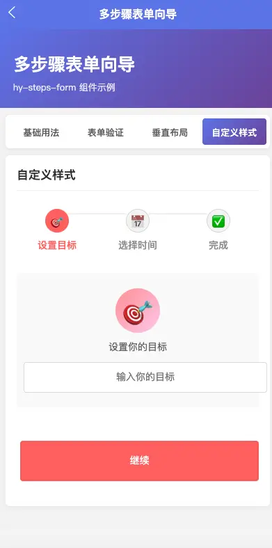 false或抛出异常可以阻止步骤切换 - nvue 限制:在 nvue 页面中,某些 CSS 样式可能不支持,建议使用行内样式