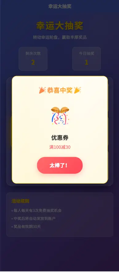 - 🎊 优惠券 - 满100减30(概率 25%)