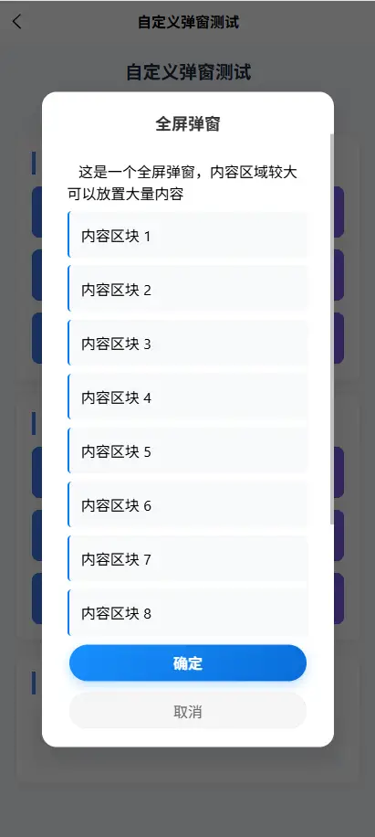 自定义弹窗,支持基础,自动一内容,全屏弹窗,及样式定制