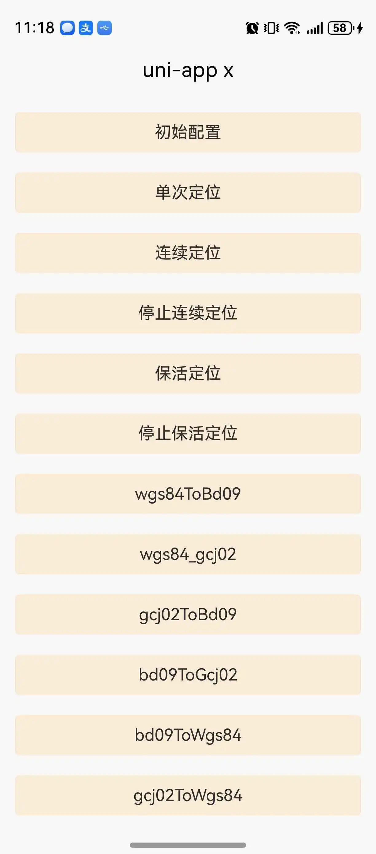 - 定位返回WGS84坐标,如需要其他坐标系,可使用插件内置的坐标转换方法。