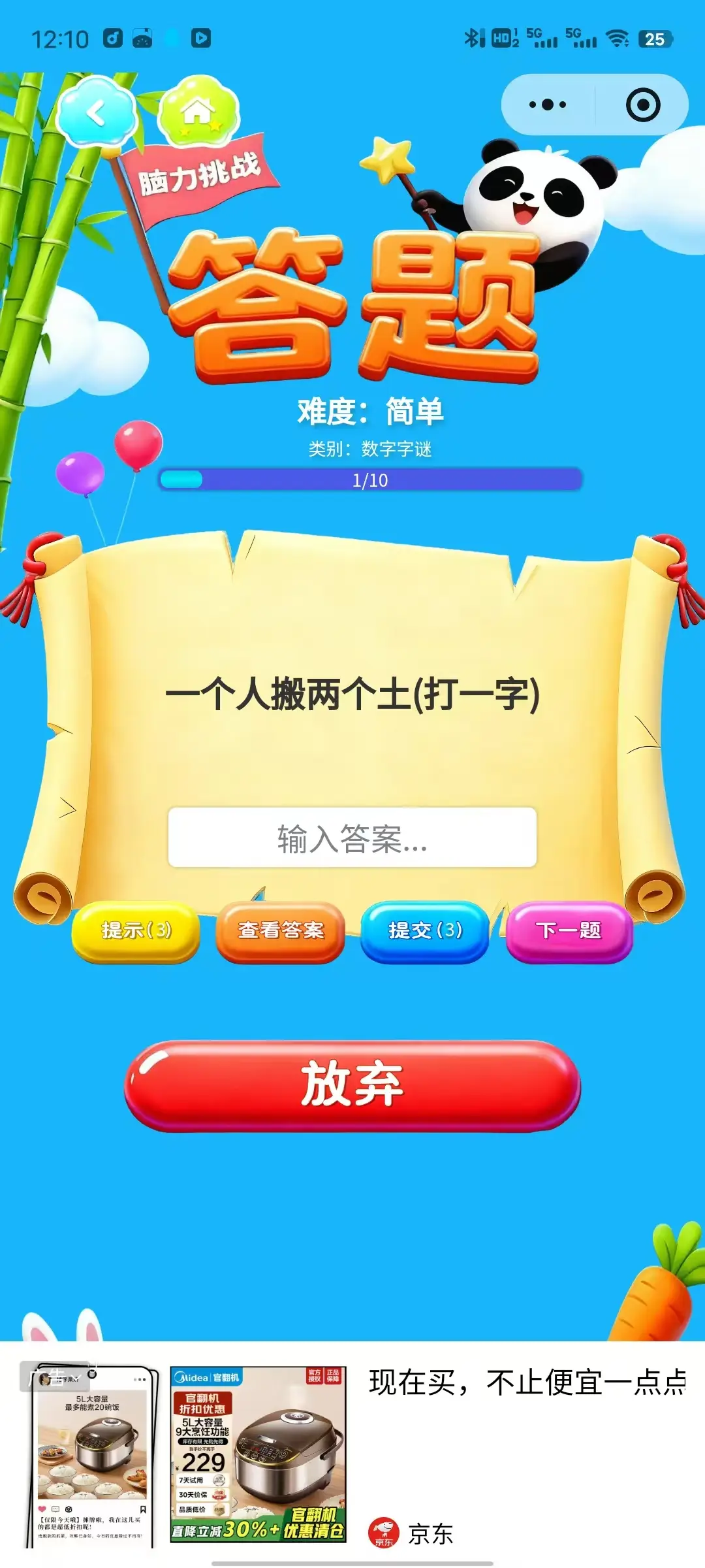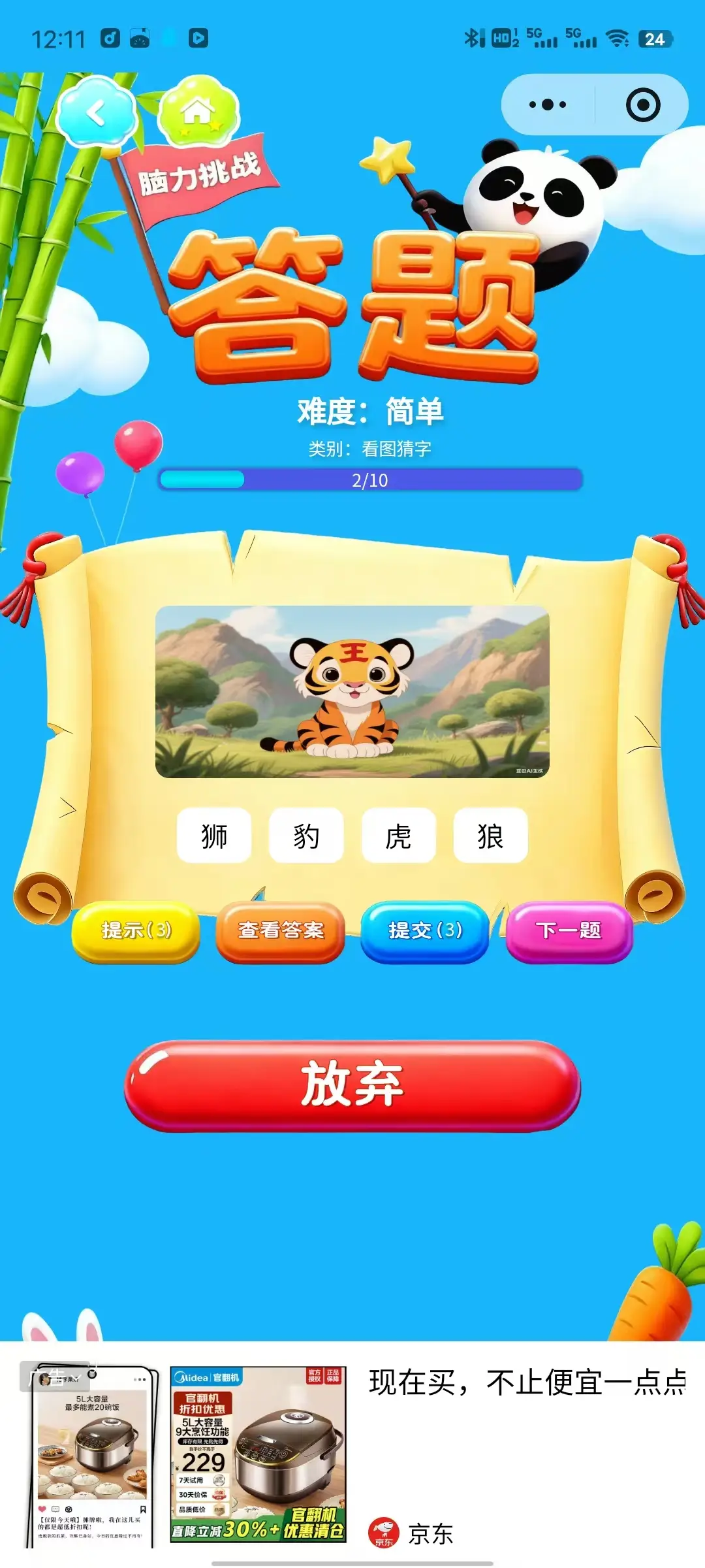 一款猜字谜的微信小程序,里面添加了流量主广告展示版块!