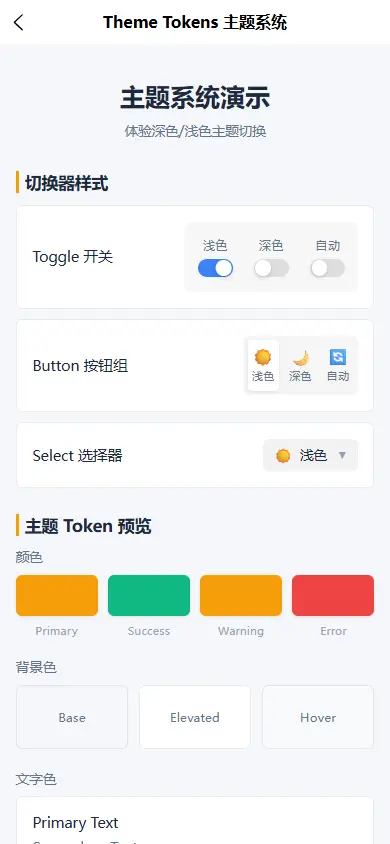 | theme | String | 'auto' | 主题模式:light/dark/auto |