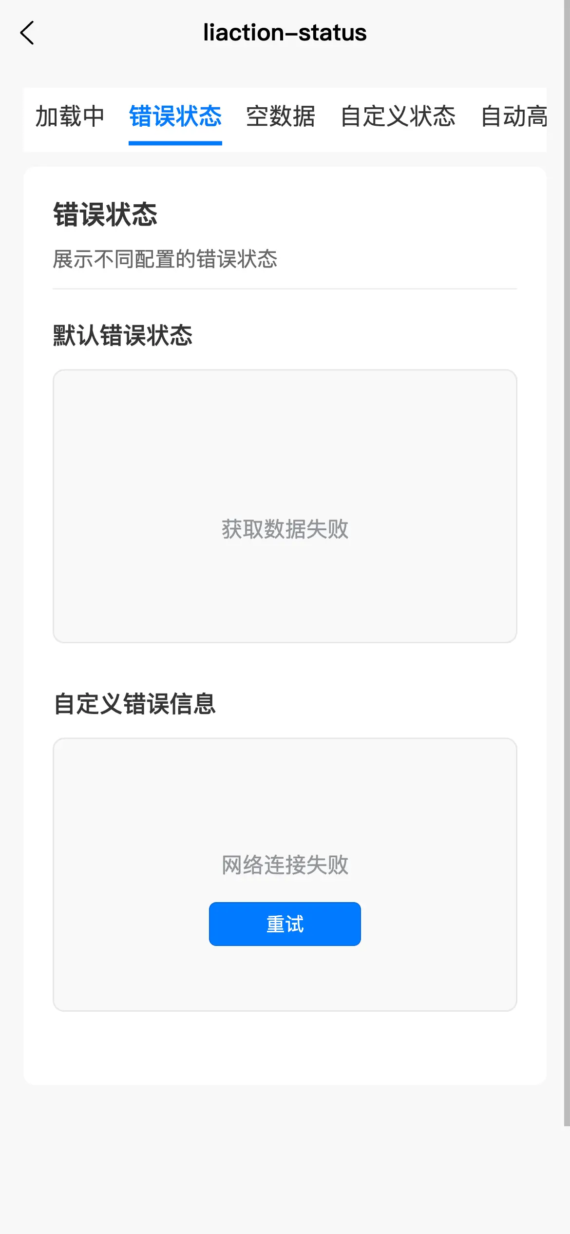 | errorButtonText | String | '重新加载' | 错误状态按钮文本 |