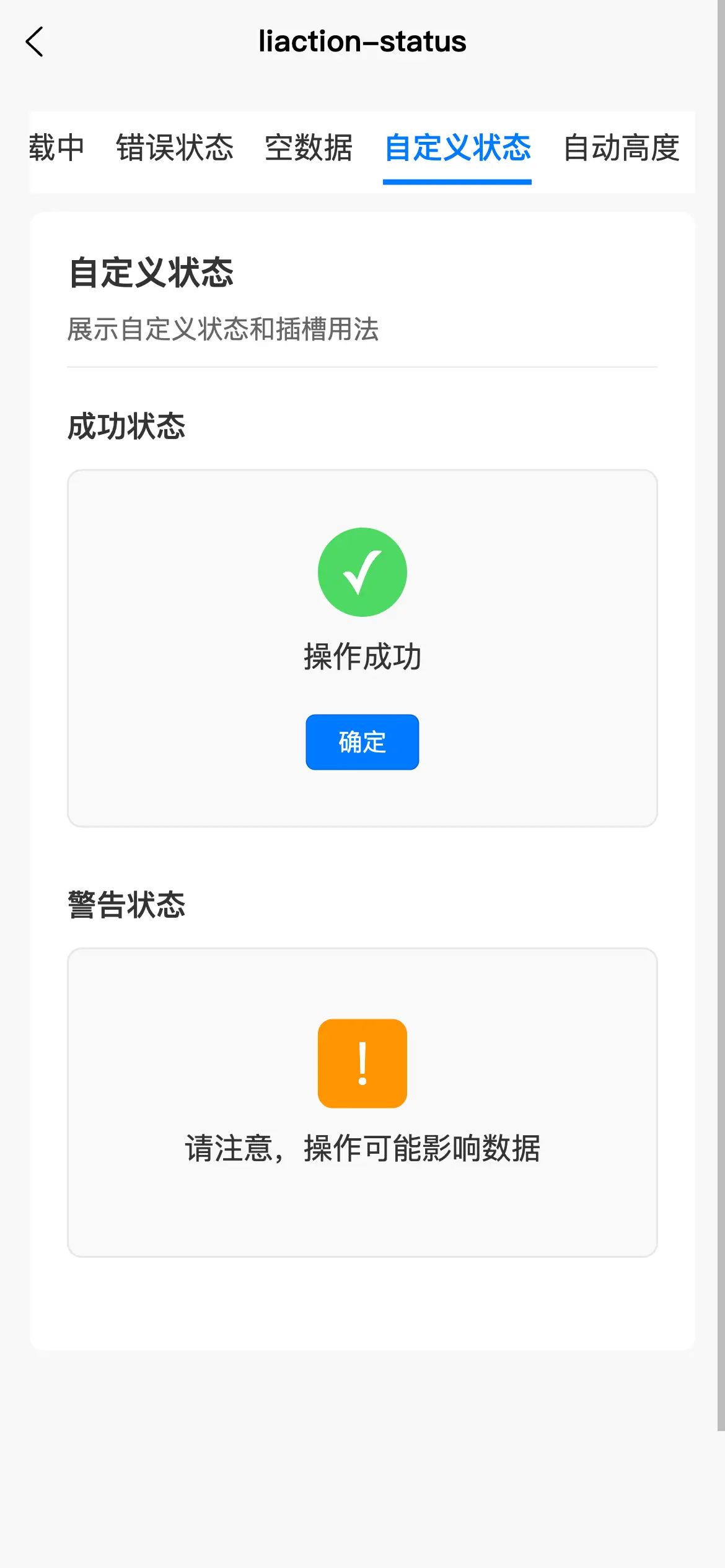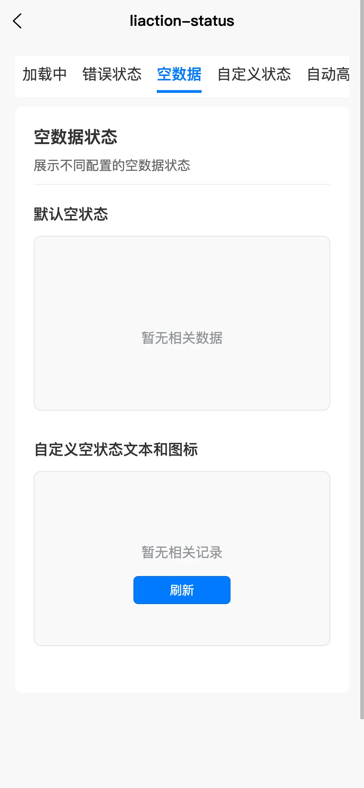 - 支持多种预设状态:loading(加载中)、error(错误)、empty(无数据)
