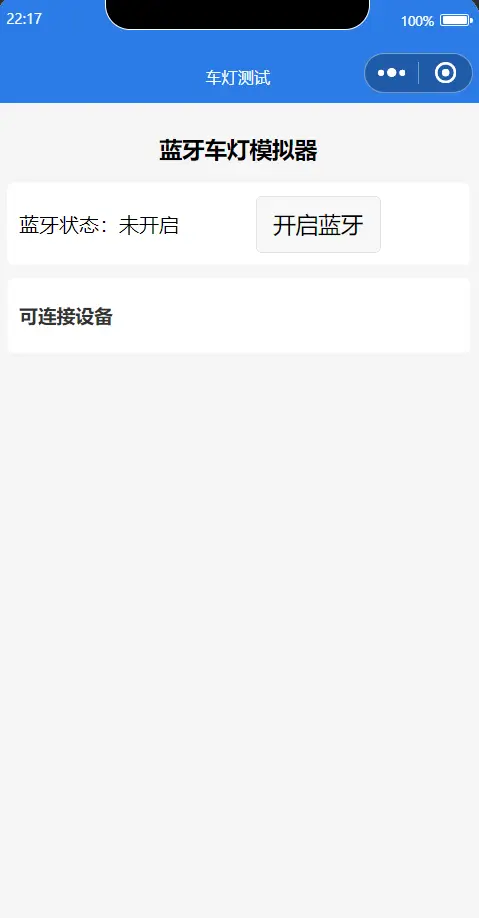 用真实蓝牙设备(如支持蓝牙的 Arduino 开发板 + LED 模拟车灯),烧录对应固件接收指令并控制 LED。 若无硬件,可使用蓝牙调试工具(如 “BLE 调试助手”)模拟车灯设备,接收指令并返回状态。