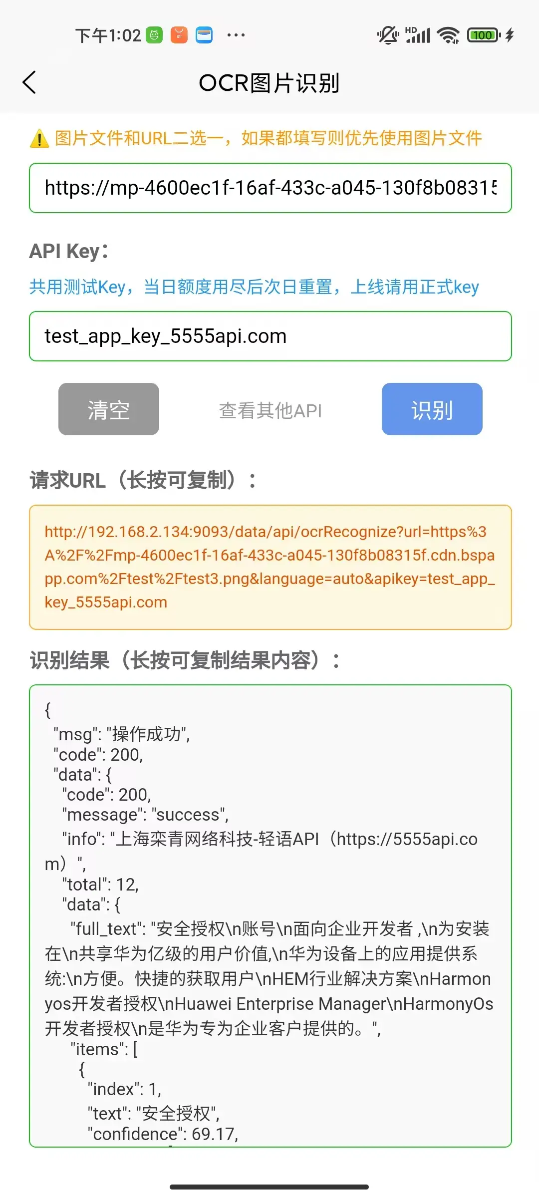 OCR图片识别,传入图片文件或图片链接,识别图片内容