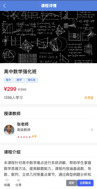 - 课程详情页面 - 展示课程详细信息和购买选项