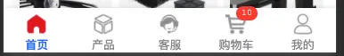 - 提供五个固定选项卡:首页、产品、客服、购物车、我的