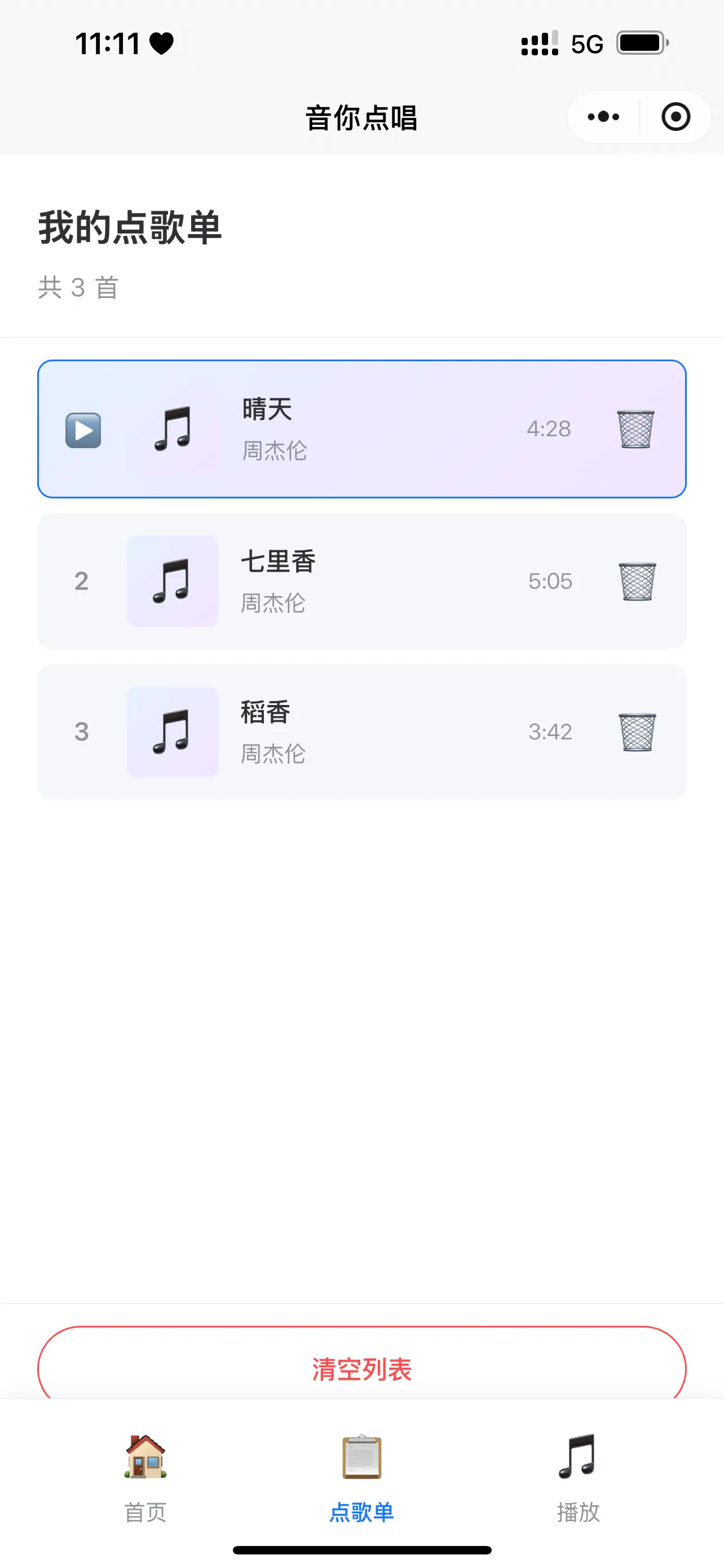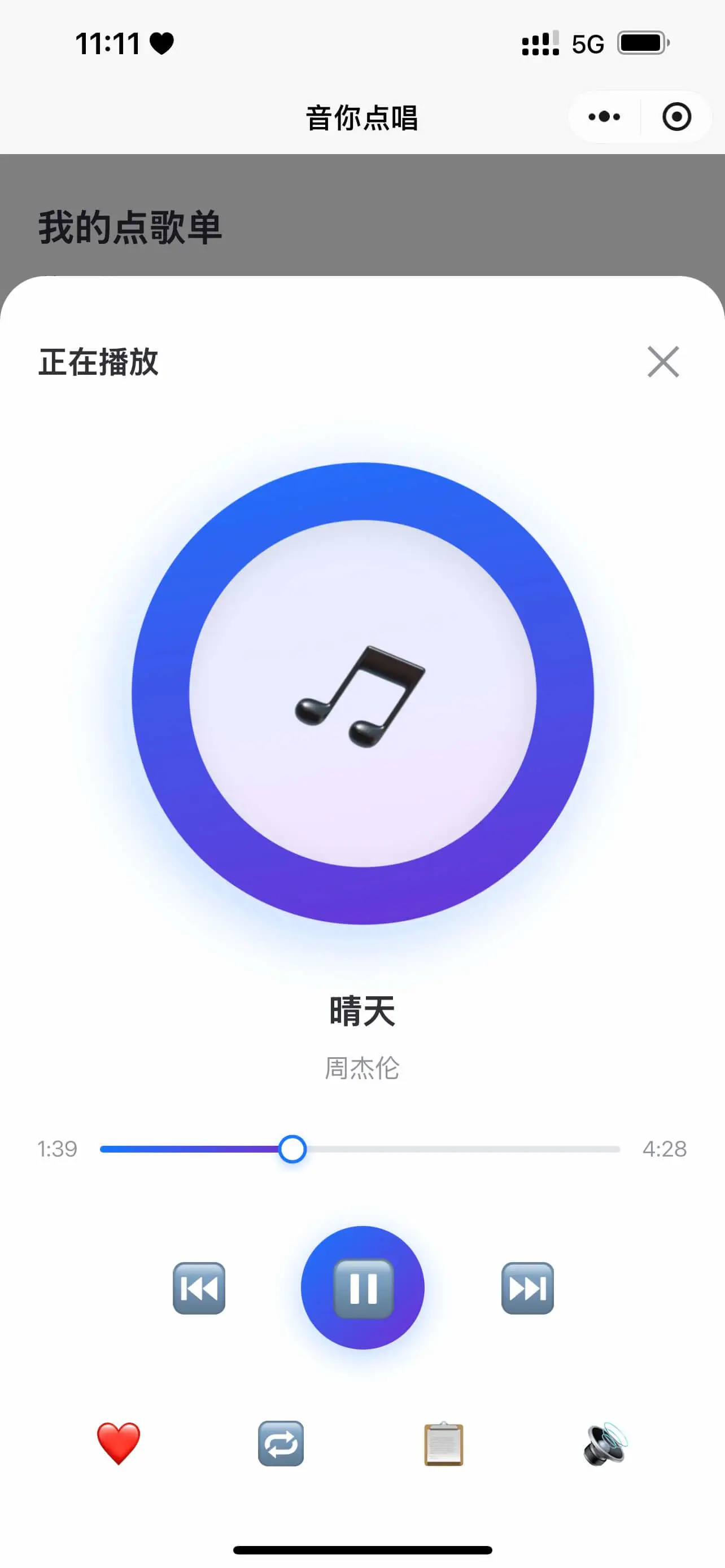 这是一个基于 uni-app 框架开发的跨平台音乐点唱工具应用,支持微信小程序、H5 等多端运行。项目模拟真实的音乐点唱场景,提供搜索、点歌、播放等核心功能,帮助用户轻松发现和分享好音乐。