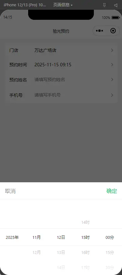 ys-dateime-picker 是一款高精度预约时间选择组件,支持用户选择 年、月、日、小时、分钟,并可灵活配置预约规则(如预约后延天数、每日可预约时段、分钟选择颗粒度),适用于各类需要精准预约的场景(如服务预约、订单预约等)。