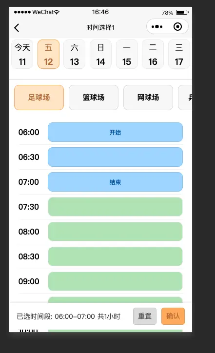 * 如果不是整分整秒会被进取到下一个时间点,时间点进取是半个小时,可以在logic.js中修改normalizeToInterval这个函数