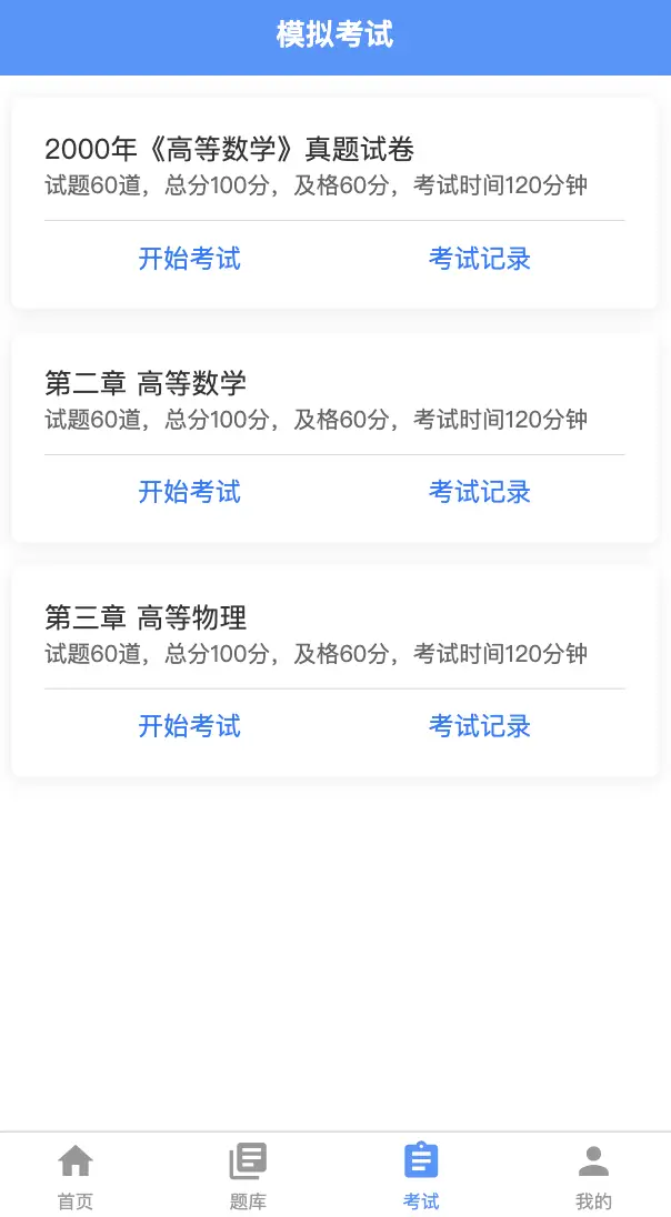 - 模拟考试页面 - 提供完整的模拟考试功能