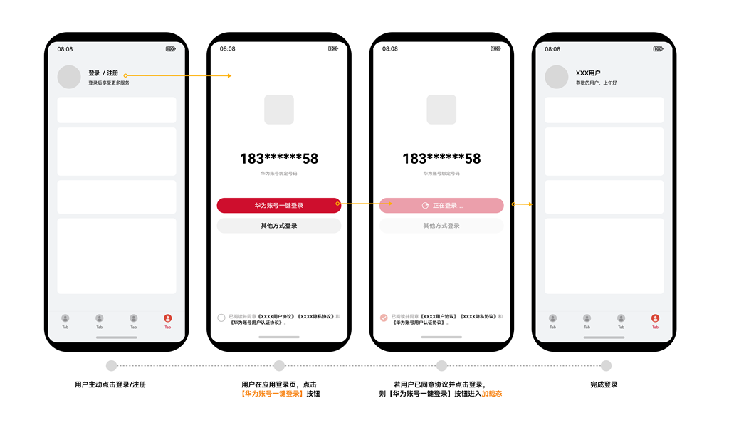 - 需要开通权限:需开通 quickLoginMobilePhone 权限,权限描述为:华为账号一键登录