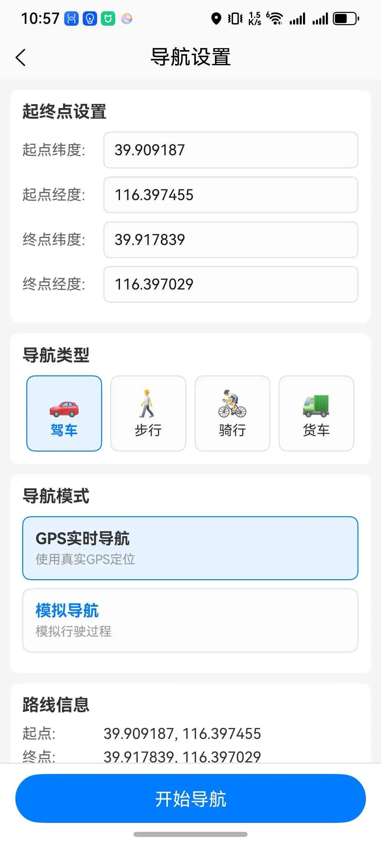 "naviMode": "gps", // 导航模式: gps/emulator