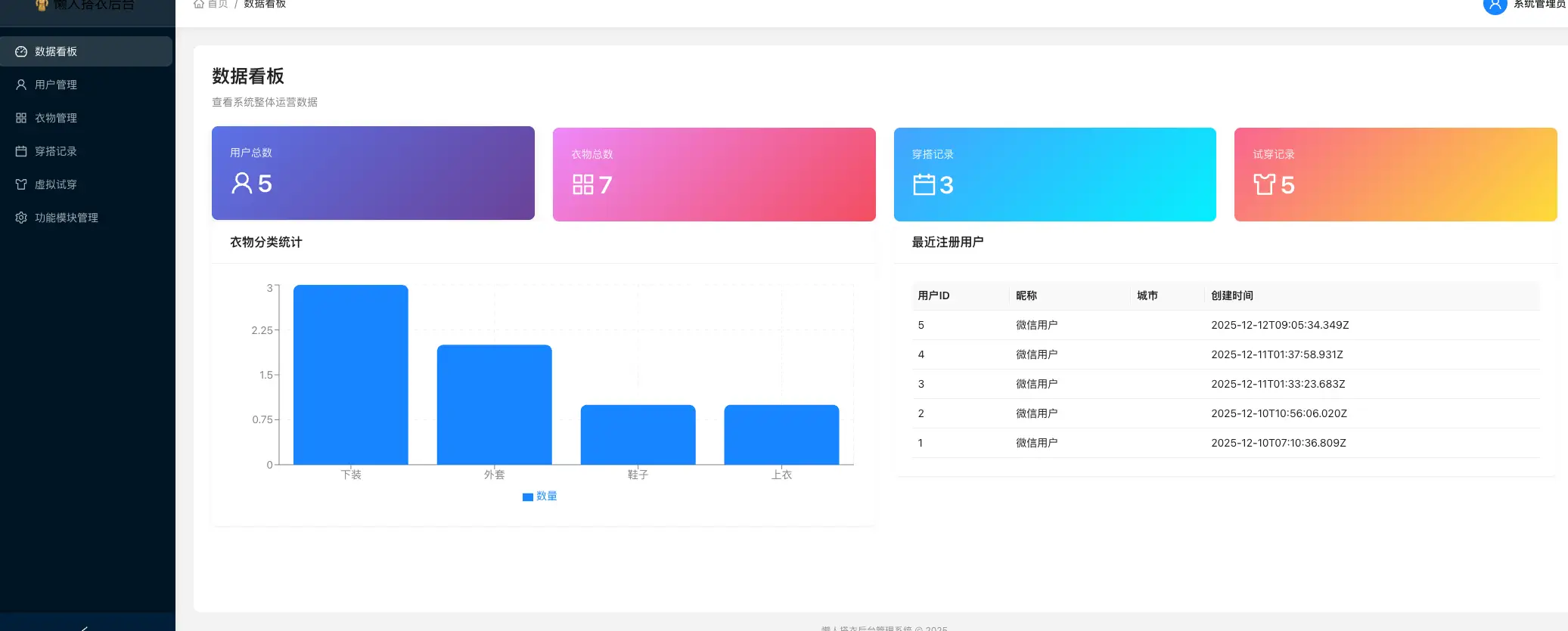 - 🛡️ 后台管理:完整的后台管理系统,管理用户、衣物、穿搭记录