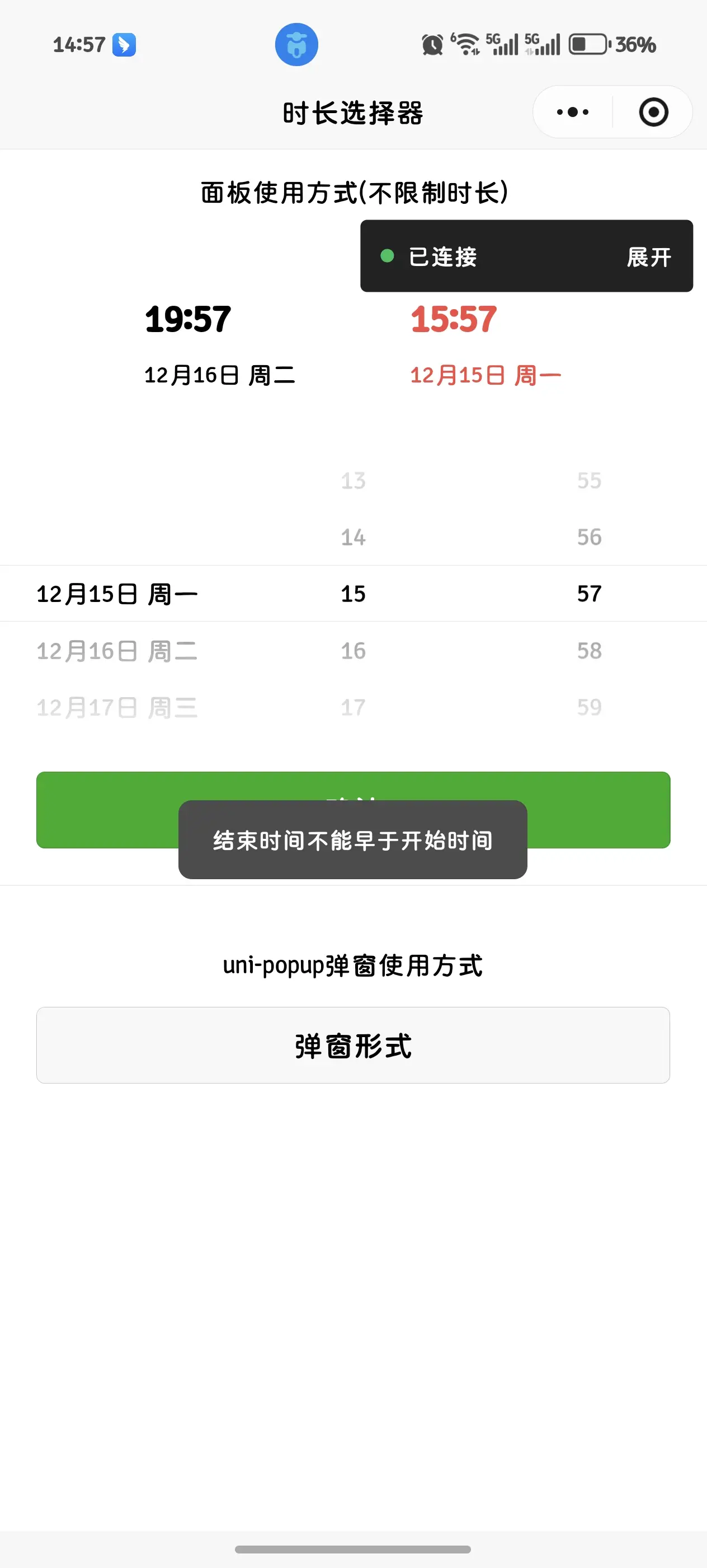 采用 uniapp 实现的一款时间范围选择器,支持 vue2、vue3;适配 web、H5、微信小程序(其他平台小程序未测试过,可自行尝试)
