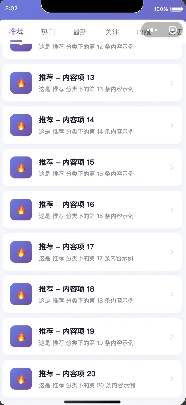 - 🔄 双向联动 - 点击 Tab 或左右滑动内容区域联动切换