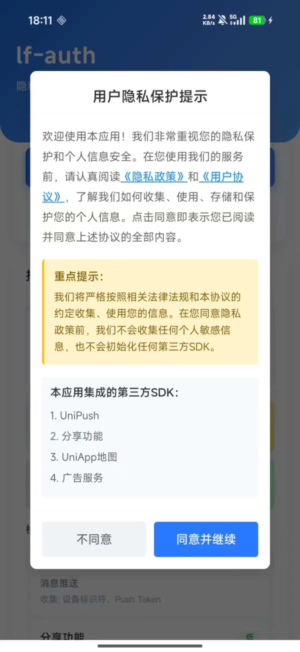 专业的 UniApp 隐私合规解决方案,帮助开发者应对国内安卓应用市场(华为、小米、OPPO、vivo 等)和 iOS App Store 的隐私合规要求。