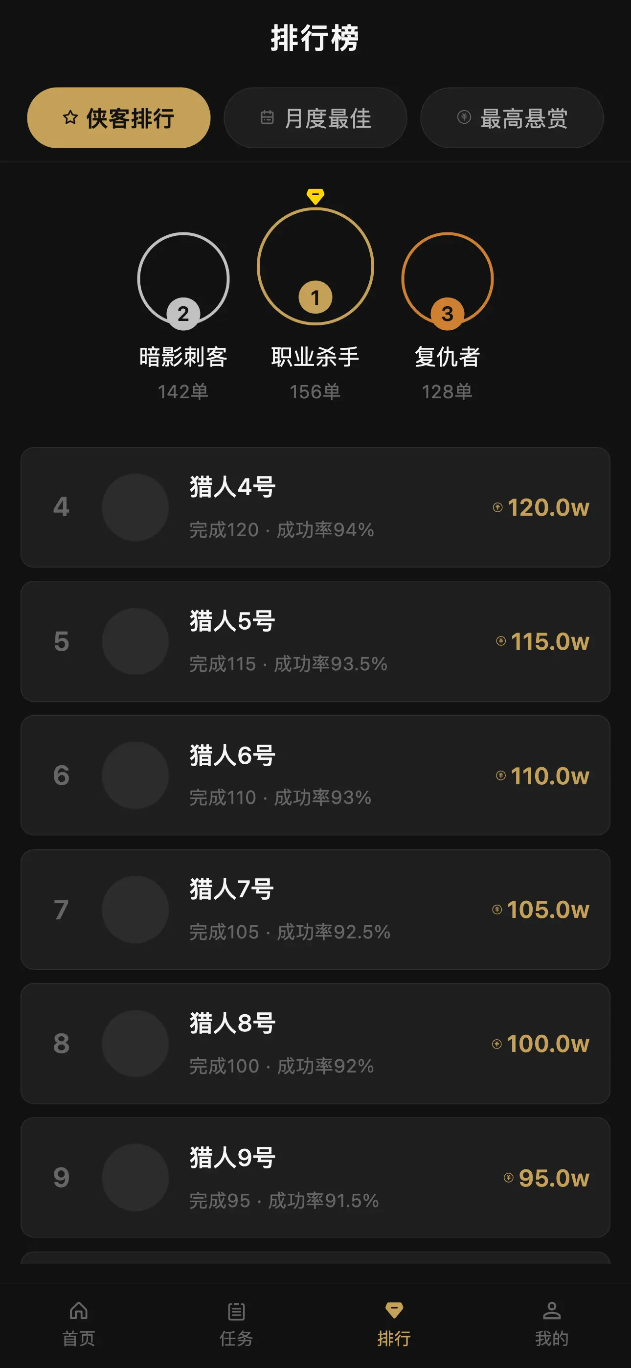 - 多维度榜单(杀手榜、富豪榜等)