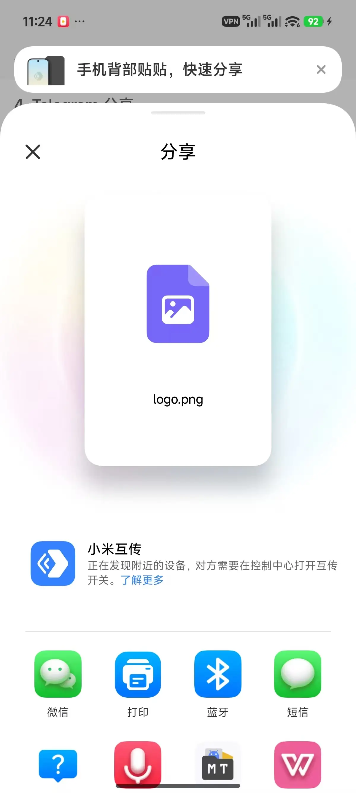 呼起系统原生分享面板,用户可选择任意支持分享的 App。