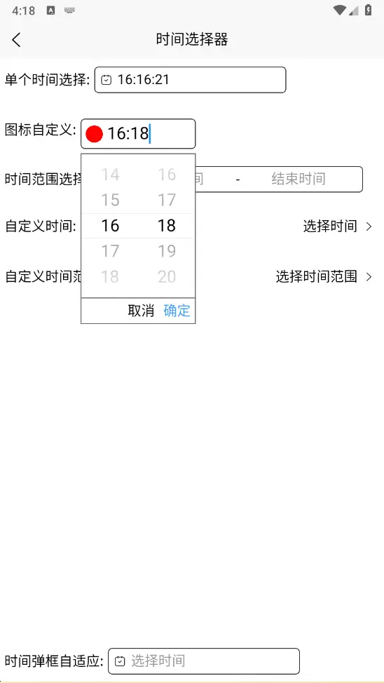 - type:string类型,time-单个时间选择,timerange-范围时间选择,默认time