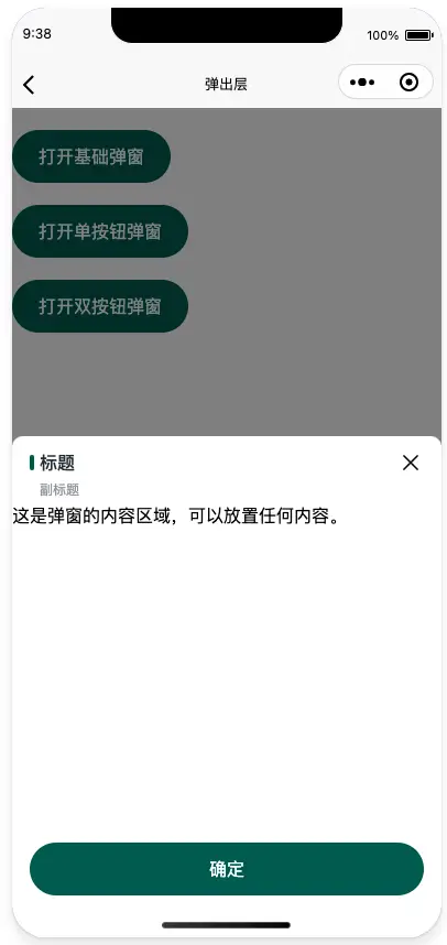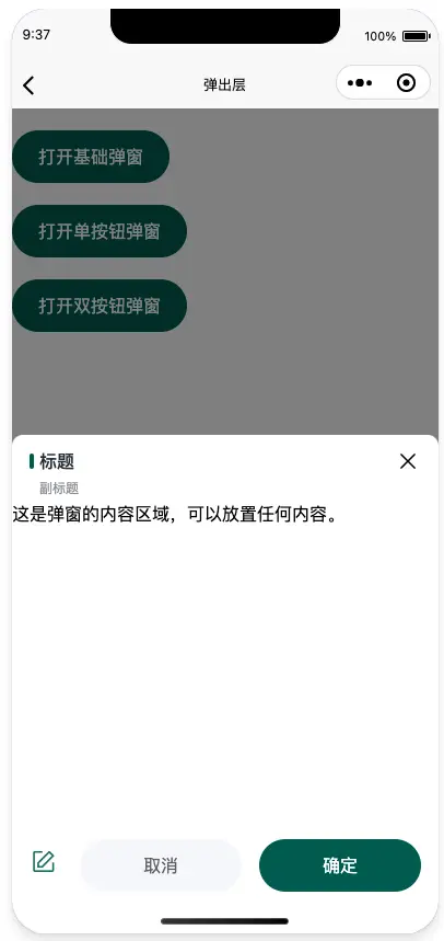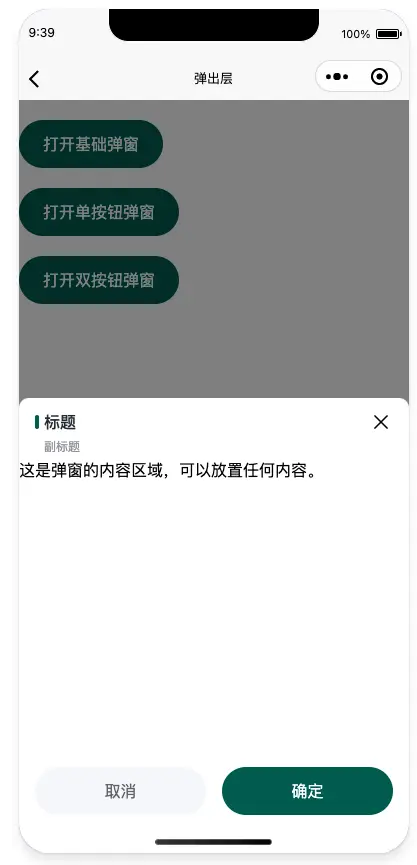 <text>这是弹窗的内容区域,可以放置任何内容。</text>