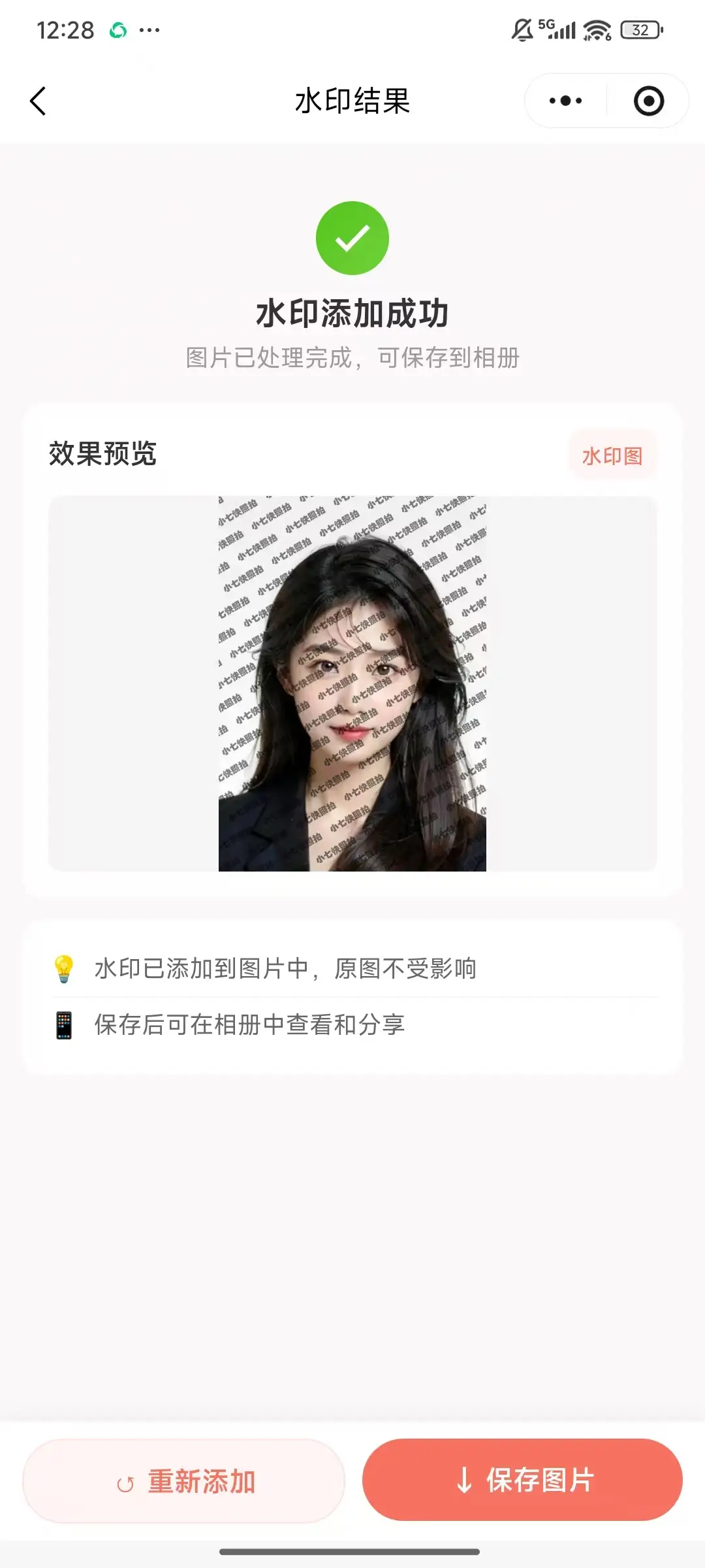 - ✅ 图片水印 - 添加自定义文字水印,支持调节大小、透明度、角度
