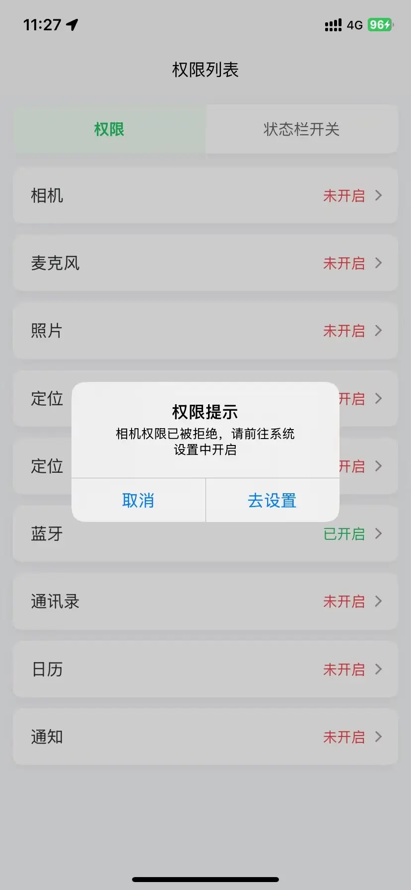 - 支持 iOS / Android 权限状态查询(不触发弹窗)