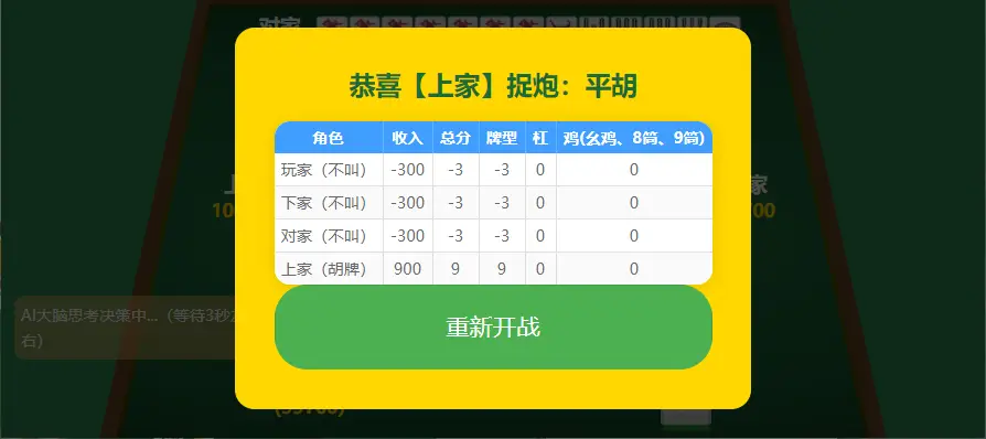 4.AI在线思考出牌决策:在线连接Deepseek现场指导出牌决策,提升玩家麻将水平,实现百战百胜。
