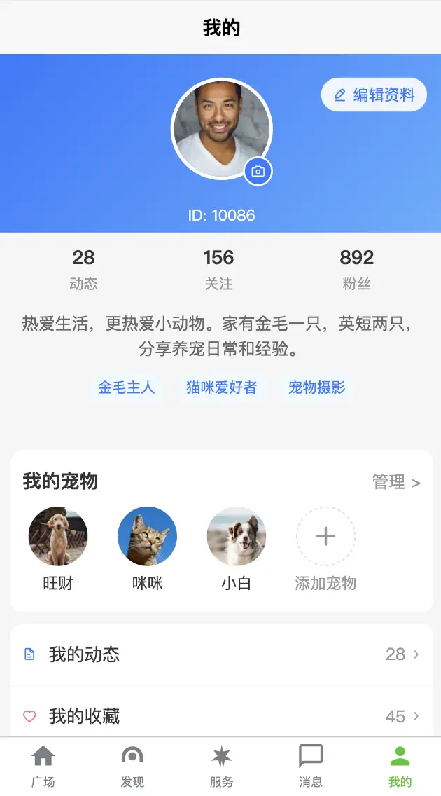 - 个人中心 - 用户主页、宠物管理、数据统计
