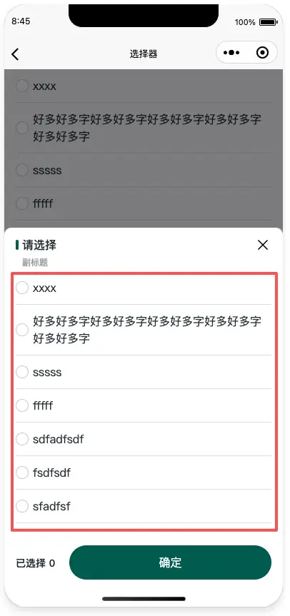 选中后回调事件 |