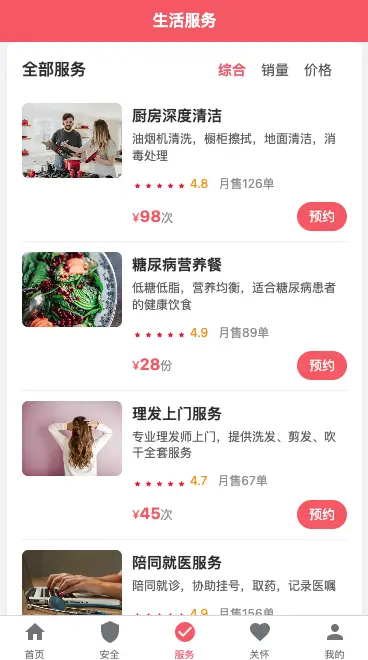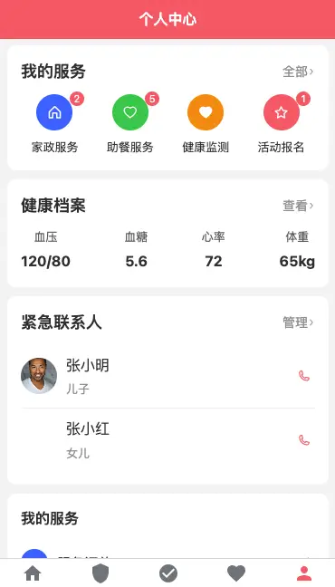 - 服务页 - 家政服务、助餐服务、助浴助行、生活代办、健康护理