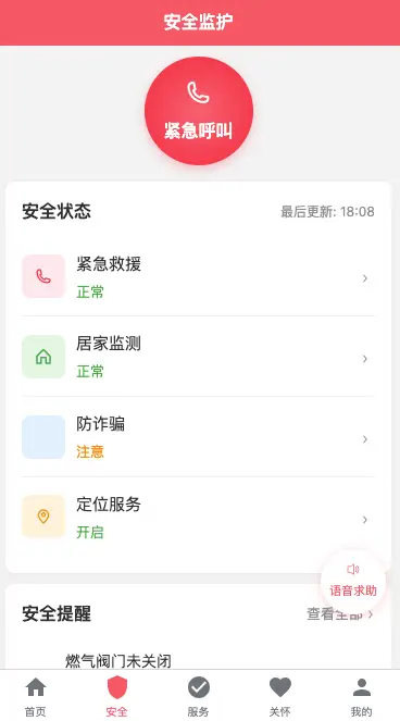 - 新增安全保障模块,包含紧急救援、居家安全监测、防诈骗服务等功能