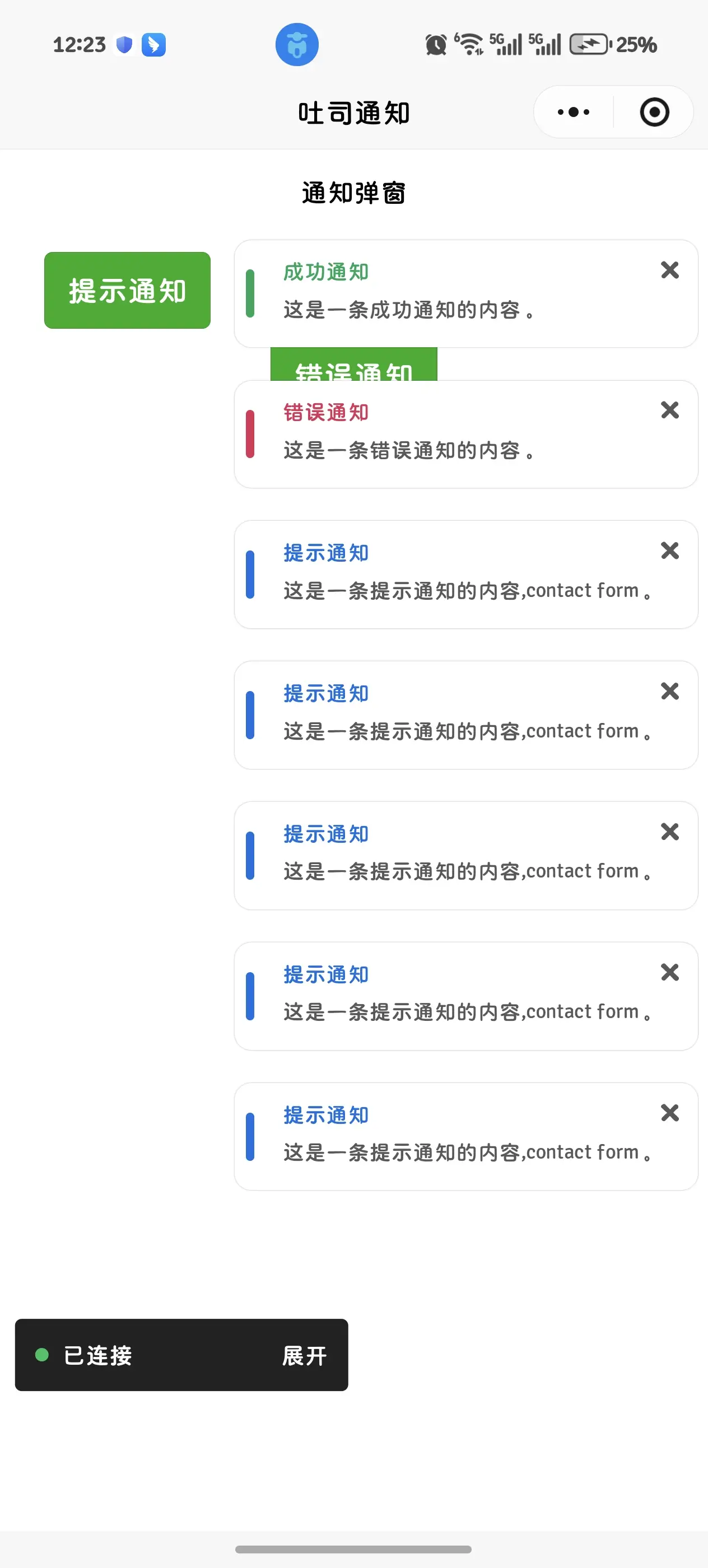 采用 uniapp+vue3 实现的一款简单吐司通知弹窗,适配 web、H5、微信小程序(其他平台小程序未测试过,可自行尝试);