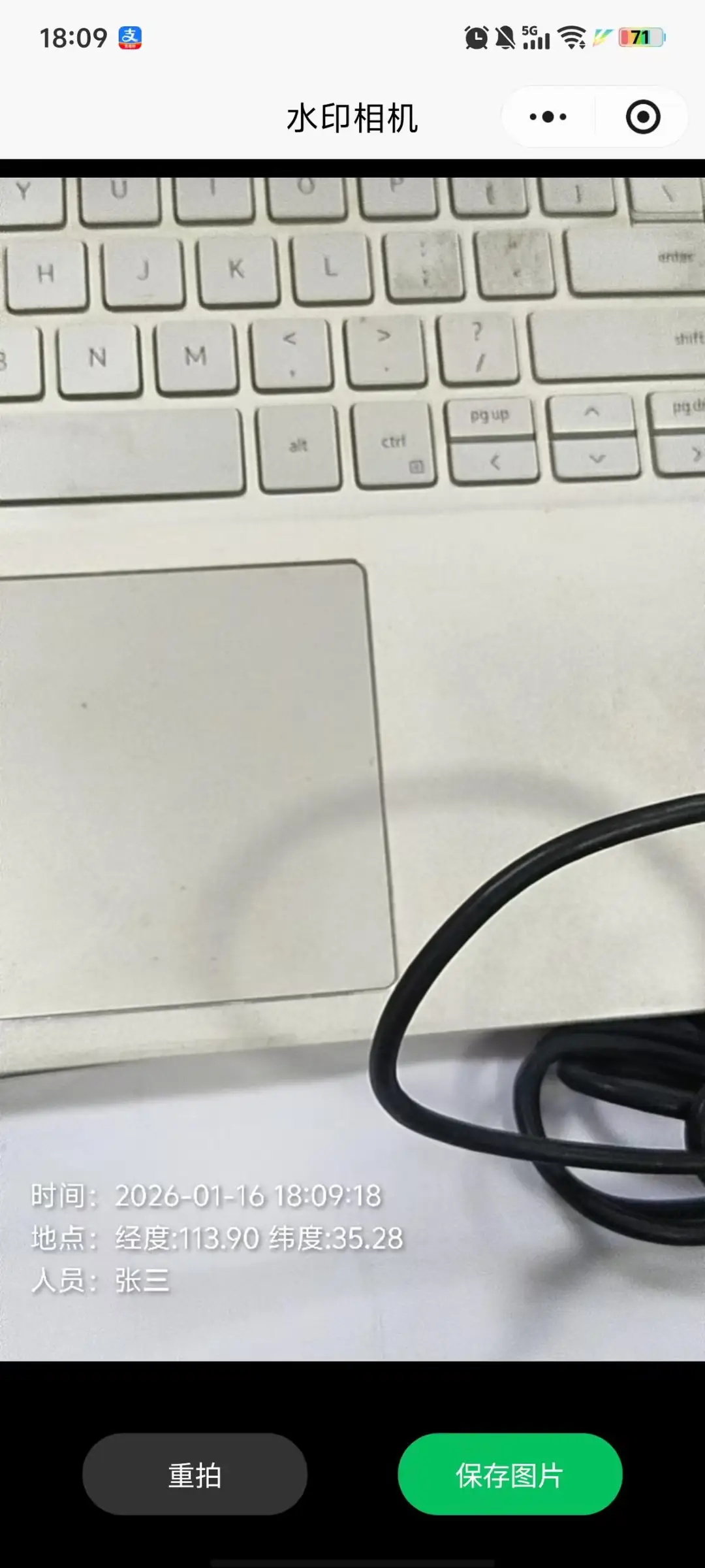 device-position属性)。 - 实时预览:在相机取景框中实时叠加水印 UI 层,实现“所见即所得”的拍摄体验。
