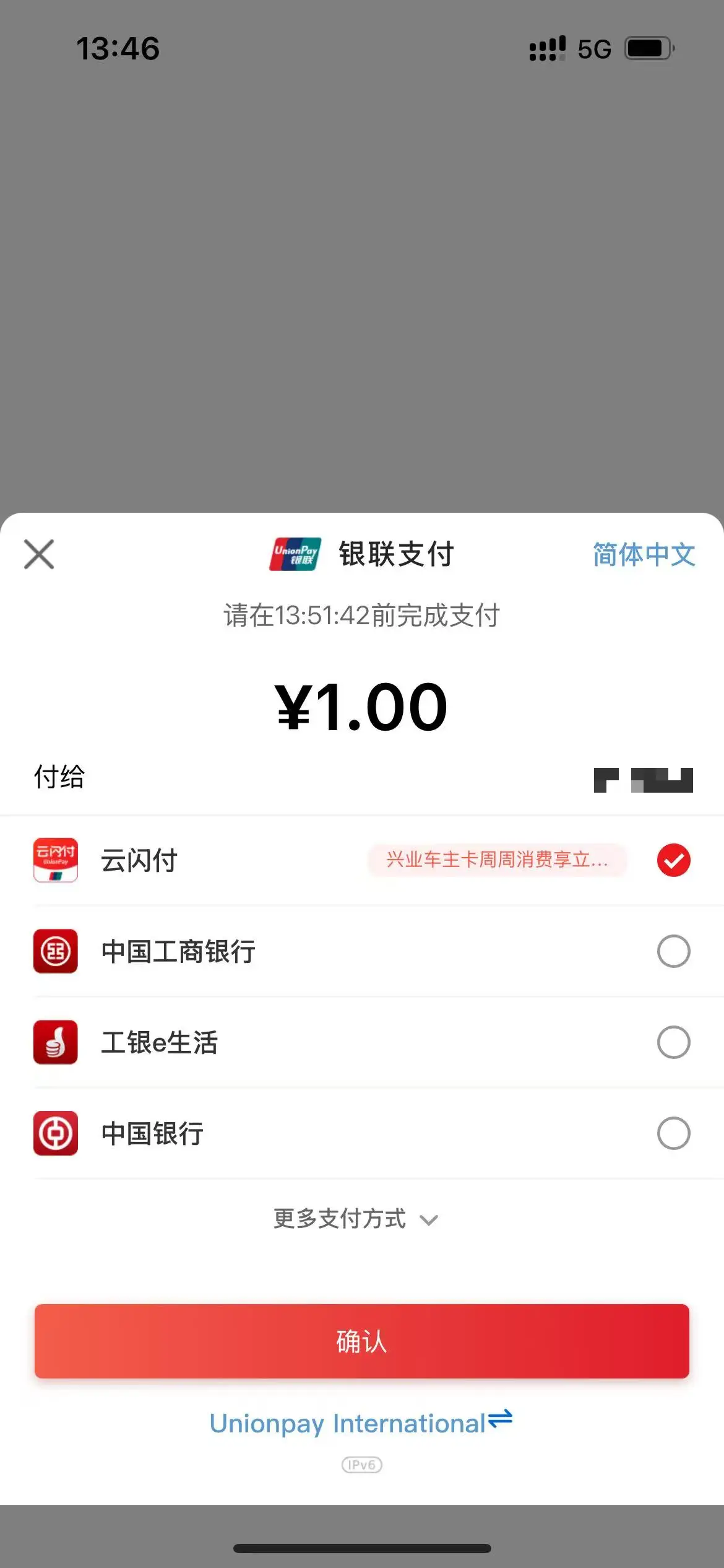 发起云闪付支付