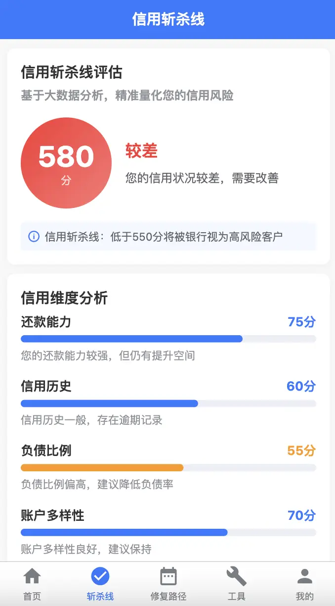 - 信用斩杀线 - 信用评分展示、斩杀线分析、风险评估