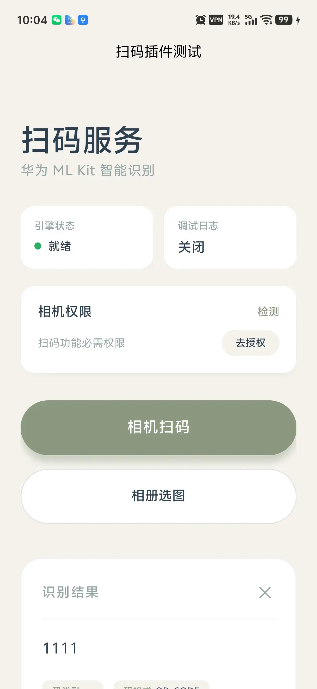一个基于UTS开发的扫码插件,专为华为ML Kit设计,支持完整的权限管理和扫码功能。