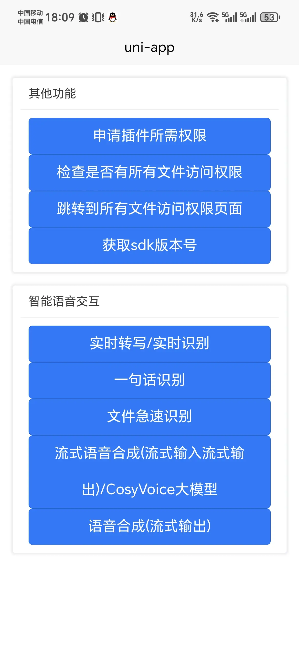 安卓阿里云语音识别语音合成UTS原生插件集成了实时语音识别,一句话识别,文件急速识别和语音合成以及流式语音合成,插件支持uniapp和uniapp x