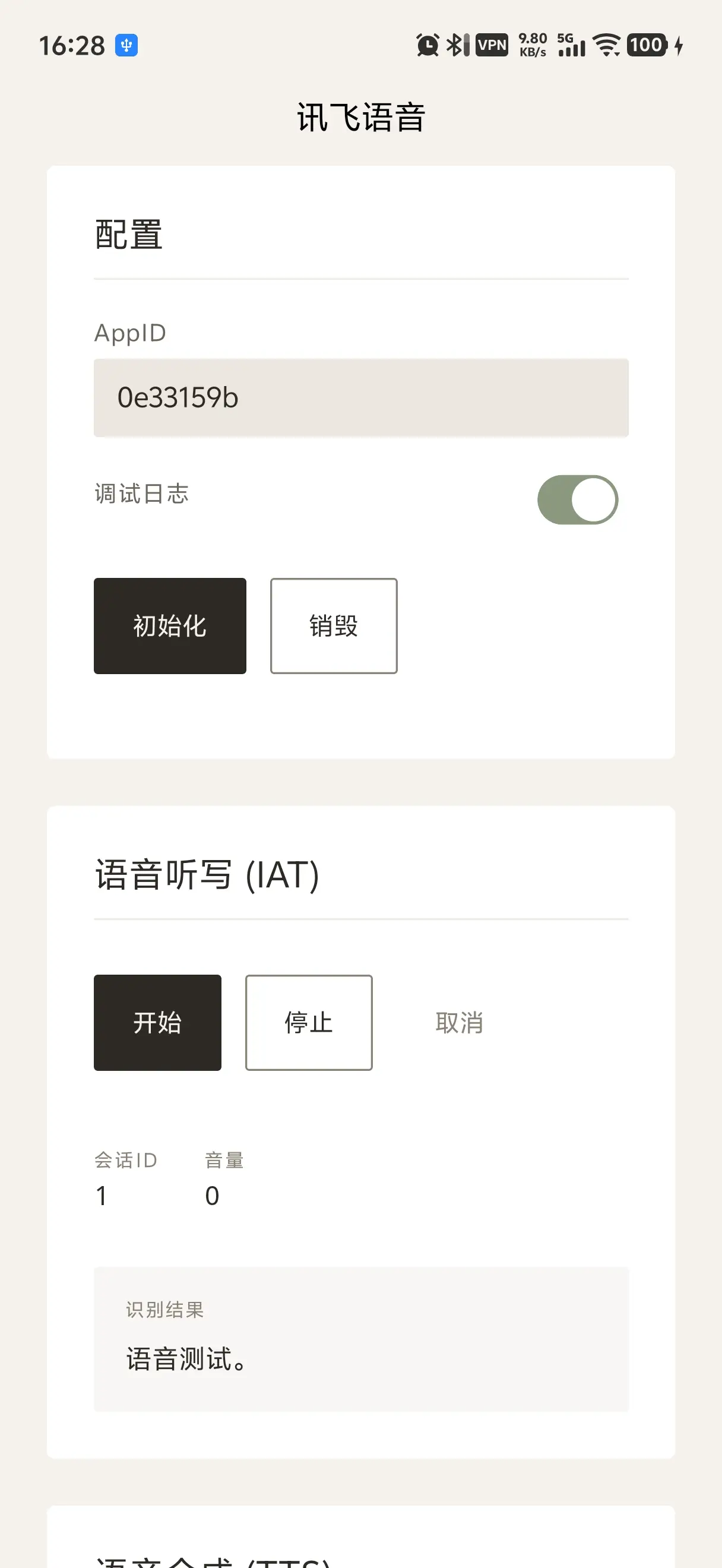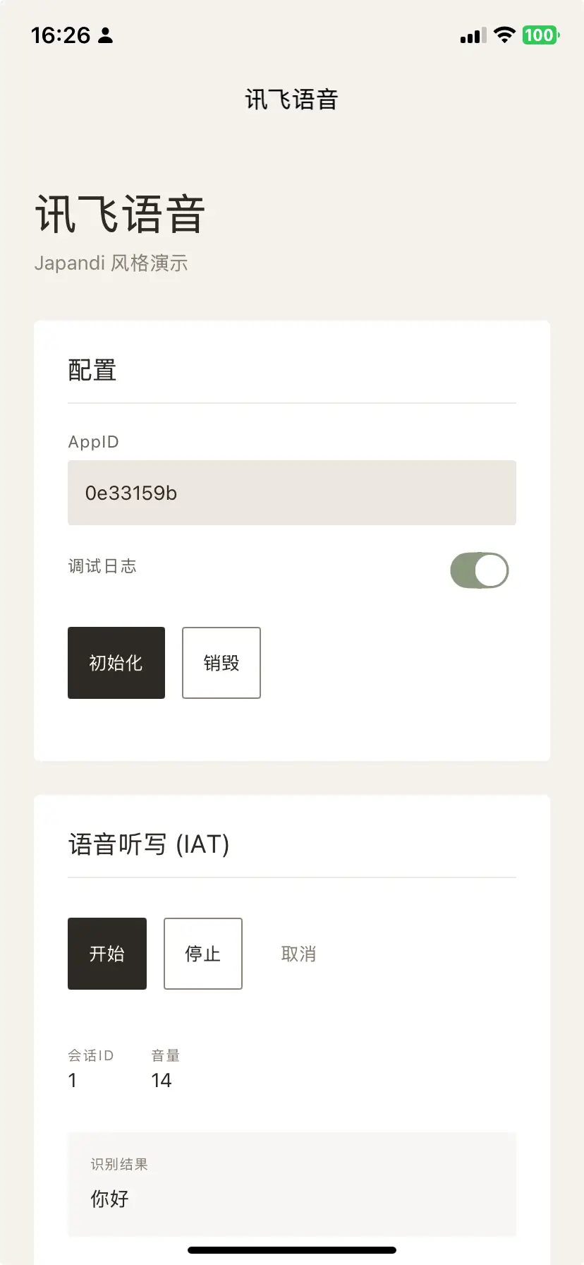 iatStart(options) => sessionIdiatStop({ sessionId })/iatCancel({ sessionId })- 事件: