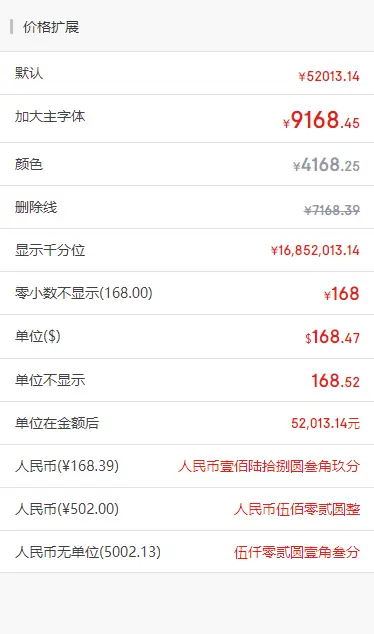 | showZeroDecimal | Boolean | true | 金额小数为零时是否显示 |