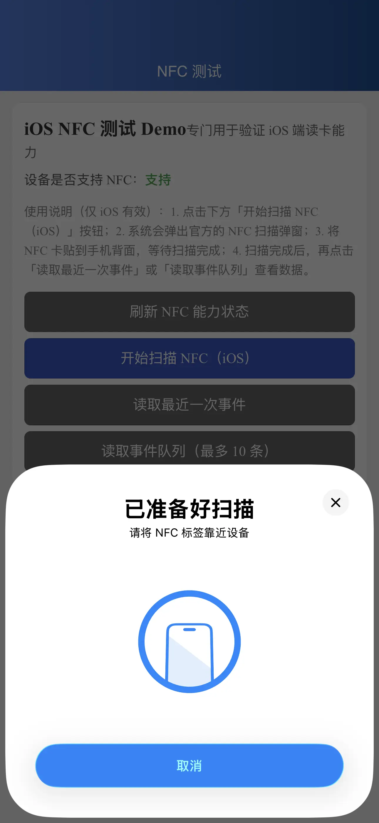 - App 在前台时,通过回调实时拿到 NFC 数据